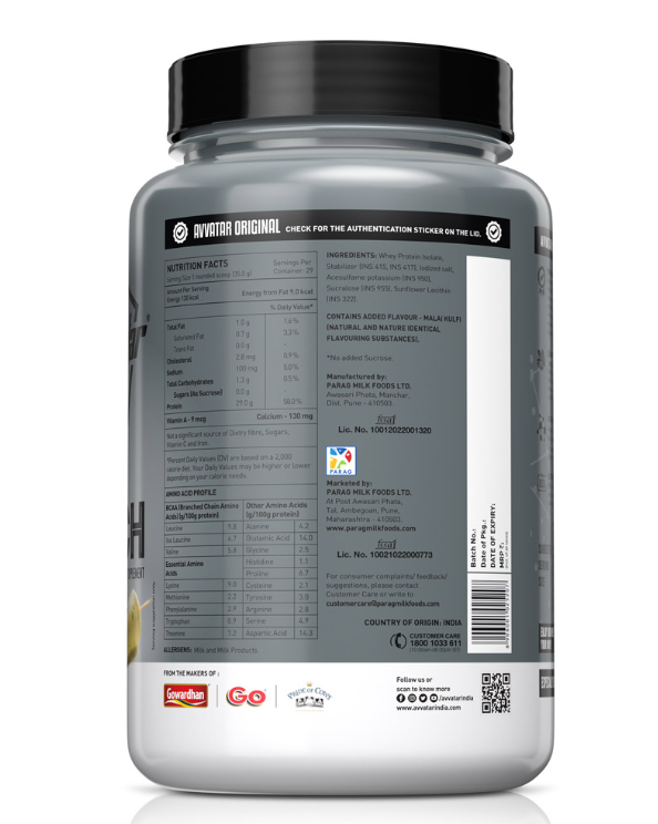 Avvatar Whey Protein is crafted with only the finest natural ingredients and without any artificial colours and fillers.