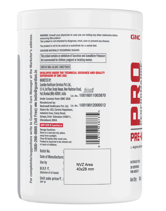 - Faster Muscle Recovery : GNC’s Pre-Workout is formulated with Beta-Alanine and L-Creatine to amplify your athletic strength and pace up muscle recovery, which delays fatigue and prevents tiredness from slowing you down till the end of your training.