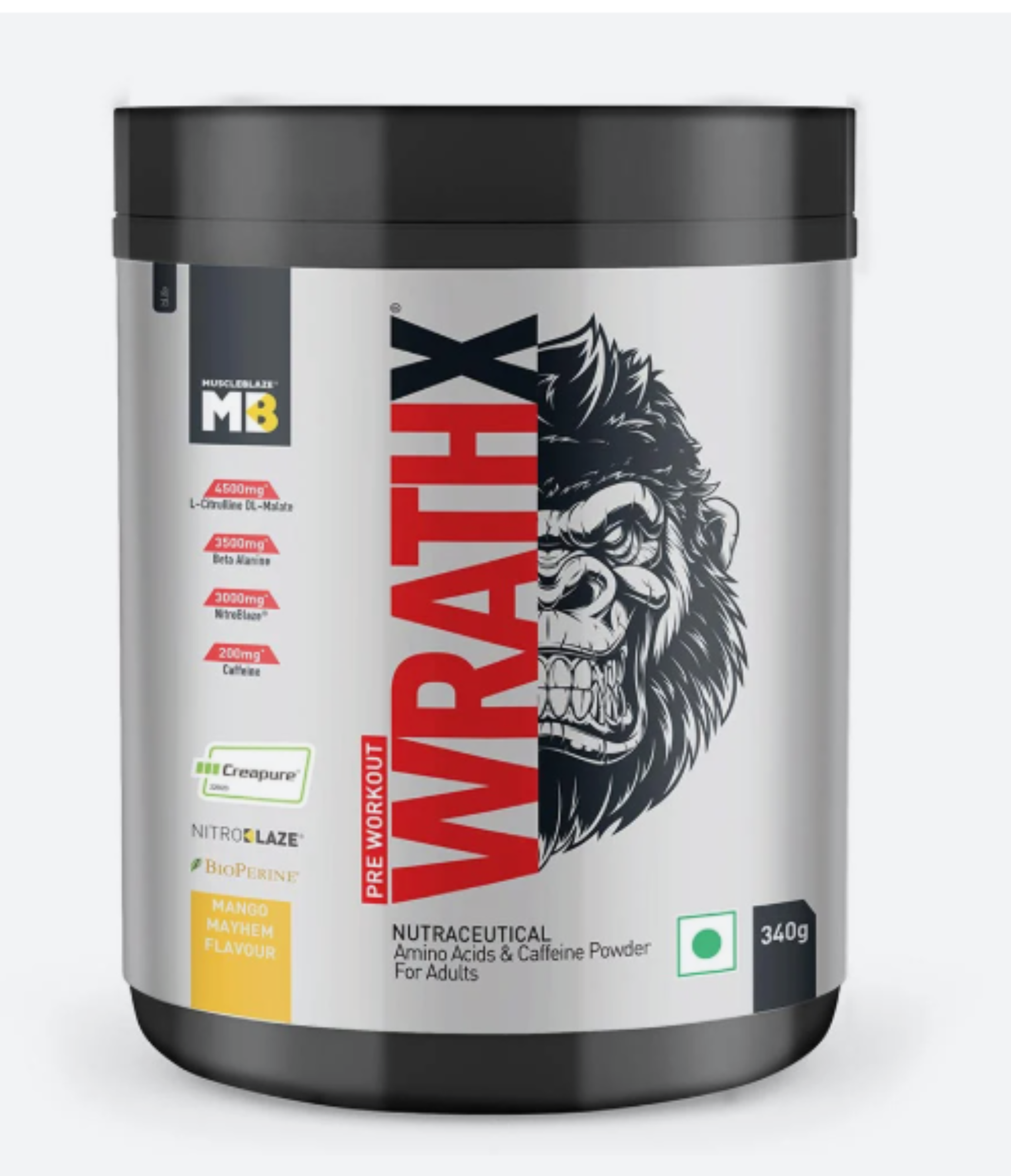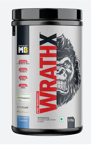MuscleBlaze WrathX provides a cleaner, more intense pre-workout experience — ideal for athletes and fitness enthusiasts striving for maximum results.