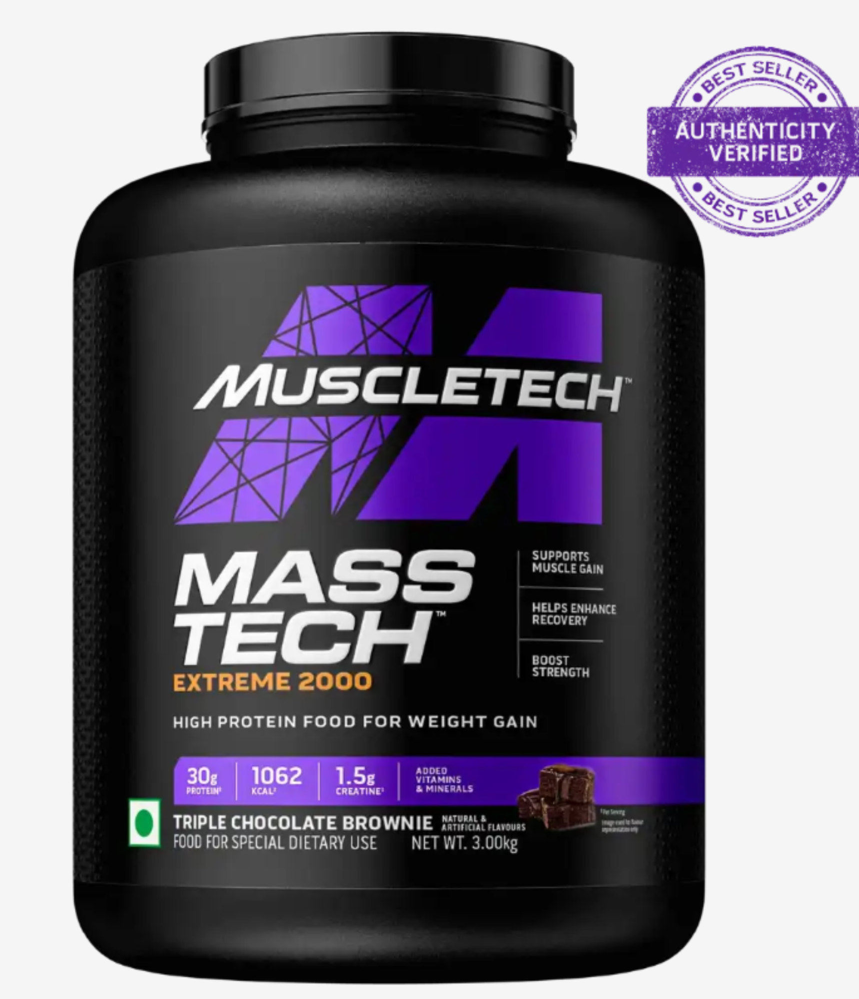 For those individuals that need a performance gainer to support the energy required for heavy work activity, Mass-Tech Extreme 2000 delivers like no other. In every 7-scoop shake mixed with 600mL of skim milk, you will have the building blocks you need to pack on muscle! The cutting-edge formula delivers enough BCAAS, including L-leucine, to amplify protein synthesis3,4.