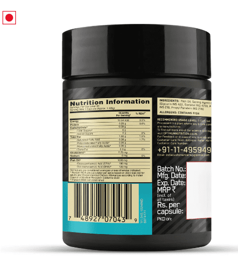 From the World’s #1 Sports Nutrition Brand, Optimum Nutrition Fish Oil delivers 1000 mg of pure fish oil per serving, containing 180 mg EPA and 120 mg DHA—two essential Omega-3 fatty acids known for their wide-ranging health benefits.