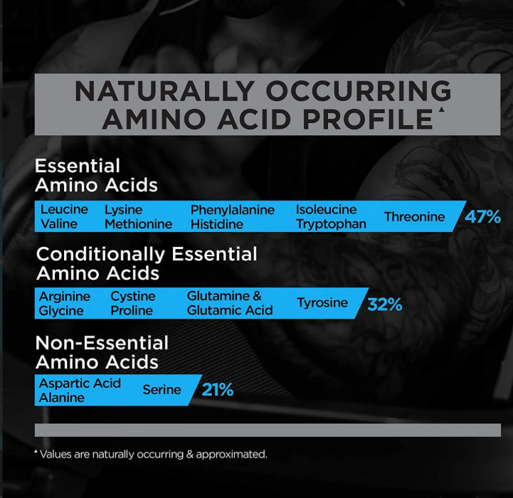 - Naturally rich in BCAAs + Glutamine