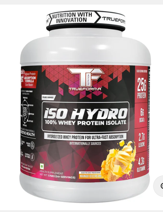 Trueforma® ISO HYDRO is a premium hydrolyzed whey protein isolate supplement designed for optimal protein absorption and faster recovery. It’s free of lactose, sugar, fats, gluten, and soy, making it the purest option for lean muscle gains.